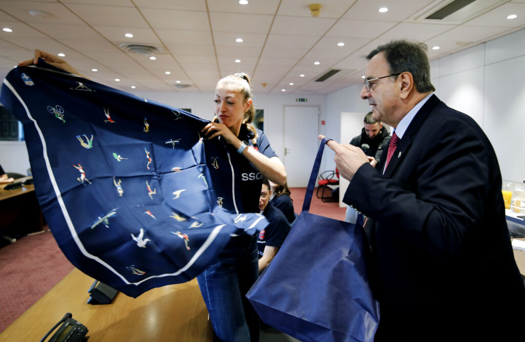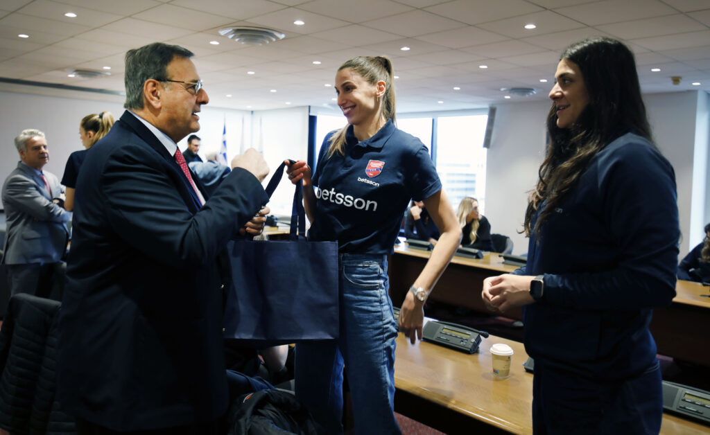 Στη συνάντηση παραβρέθηκαν οι αθλήτριες της ομάδας, ο Πρόεδρος των τμημάτων βόλεϊ του Πανιωνίου, Στάθης Νικολούζος, ο προπονητής Ντράγκαν Νέσιτς, καθώς και ο Πρόεδρος της Ελληνικής Ομοσπονδίας Πετοσφαίρισης και μέλος της ΕΟΕ Γιώργος Καραμπέτσος με τον Πρόεδρο της Ελληνικής Ομοσπονδίας Μπέιζμπολ Σόφτμπολ και μέλος της ΕΟΕ Κωστή Λιαρομμάτη.