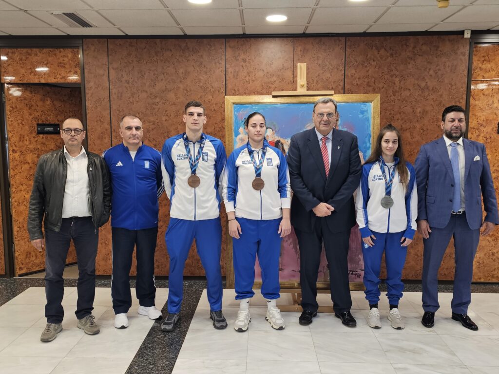 Ο Πρόεδρος της Ελληνικής Ολυμπιακής Επιτροπής Ισίδωρος Κούβελος, υποδέχθηκε τα παιδιά που κατέκτησαν μετάλλια στο Ευρωπαϊκό Πρωτάθλημα πυγμαχίας U23, την «ασημένια» Αντωνία Γιαννακοπούλου και τους «χάλκινους» Βασιλική Σταυρίδου και Ζαχαρία Μυλωνά.